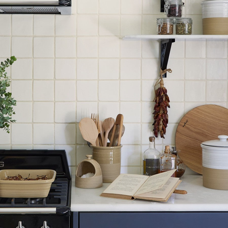Crafted with dedication to both aesthetics and sustainability, Scotia is made of Ecogres. Our skilled artisans have created a range of kitchen essentials that celebrate both heritage and innovation. The glossy white glaze adds a layer of contemporary refinement, seamlessly merging tradition with modern sophistication. Keep near the cooking area to easily access a pinch of salt for seasoning.