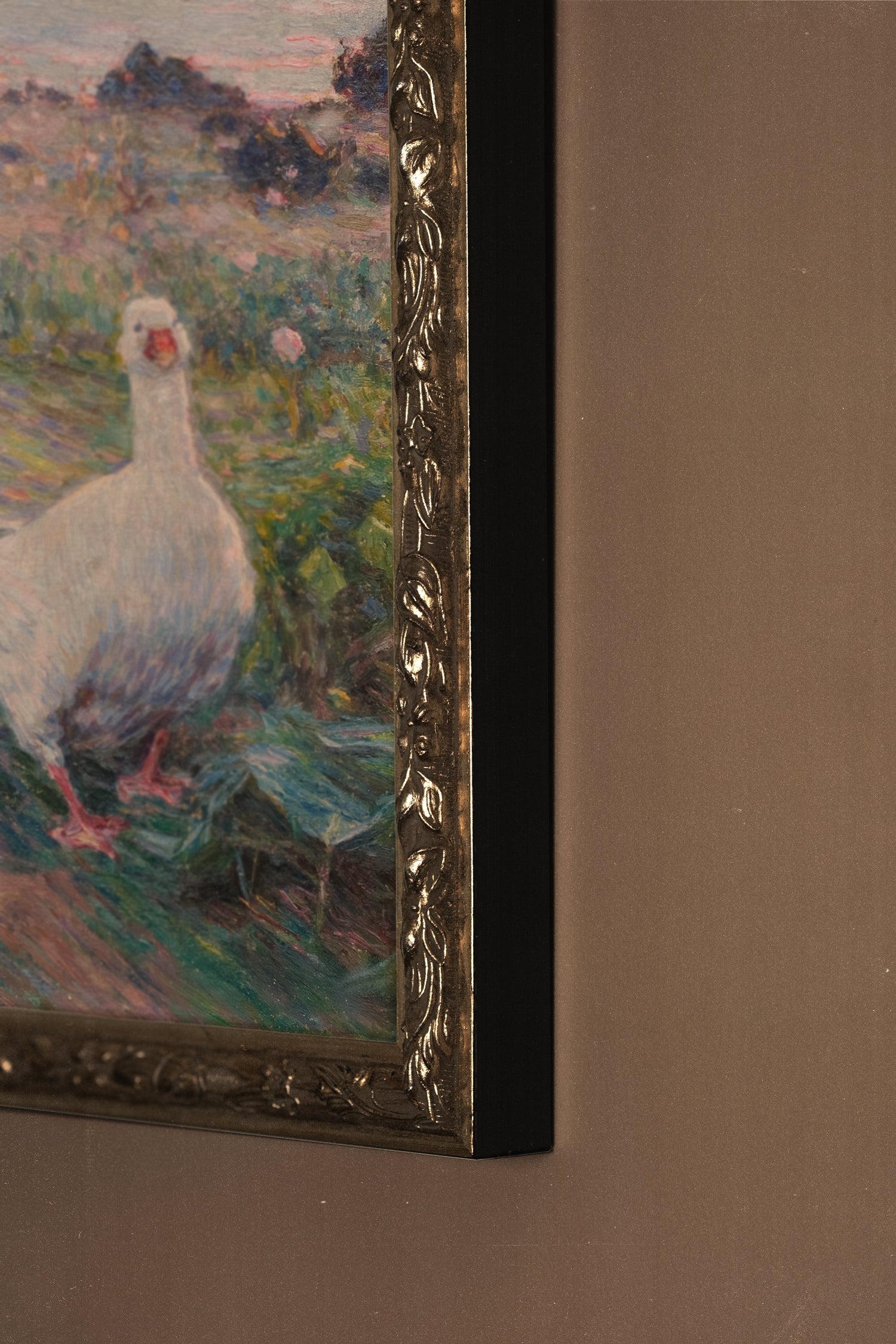 FEATHERS IN THE WIND -Artwork on rigid canvas, framed in Vintage Silver
