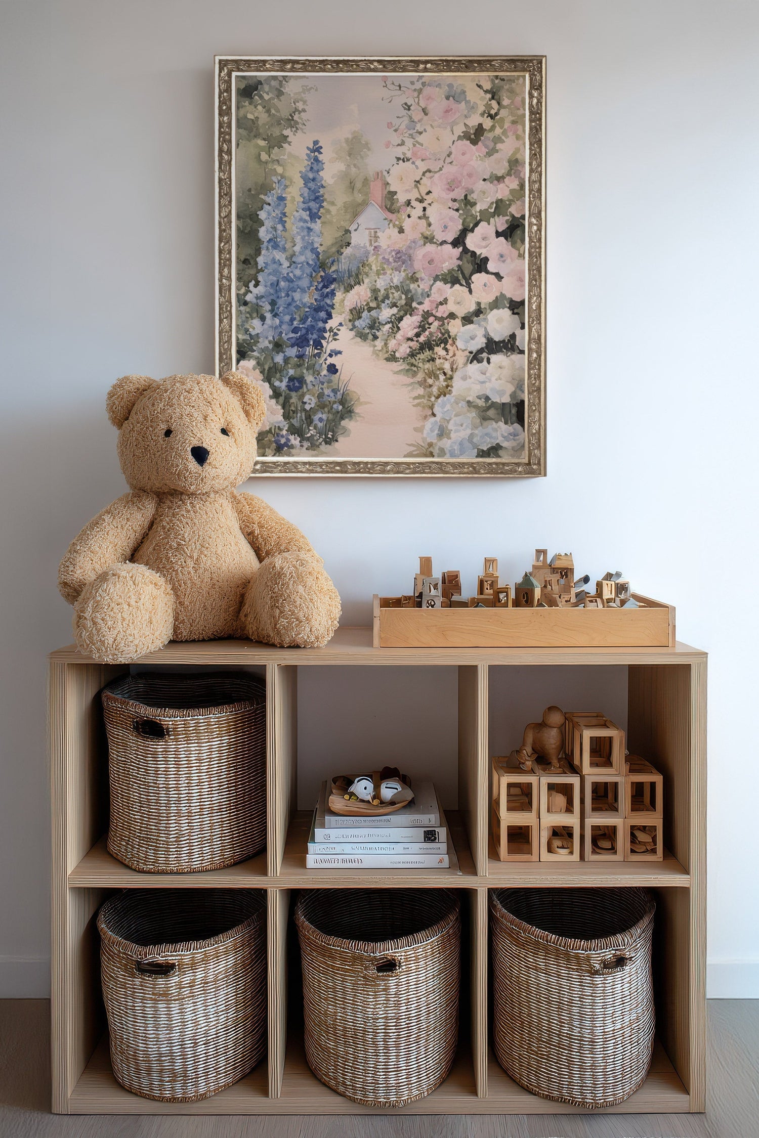 FLOWERED PATH -Artwork on rigid canvas, framed in Vintage Silver