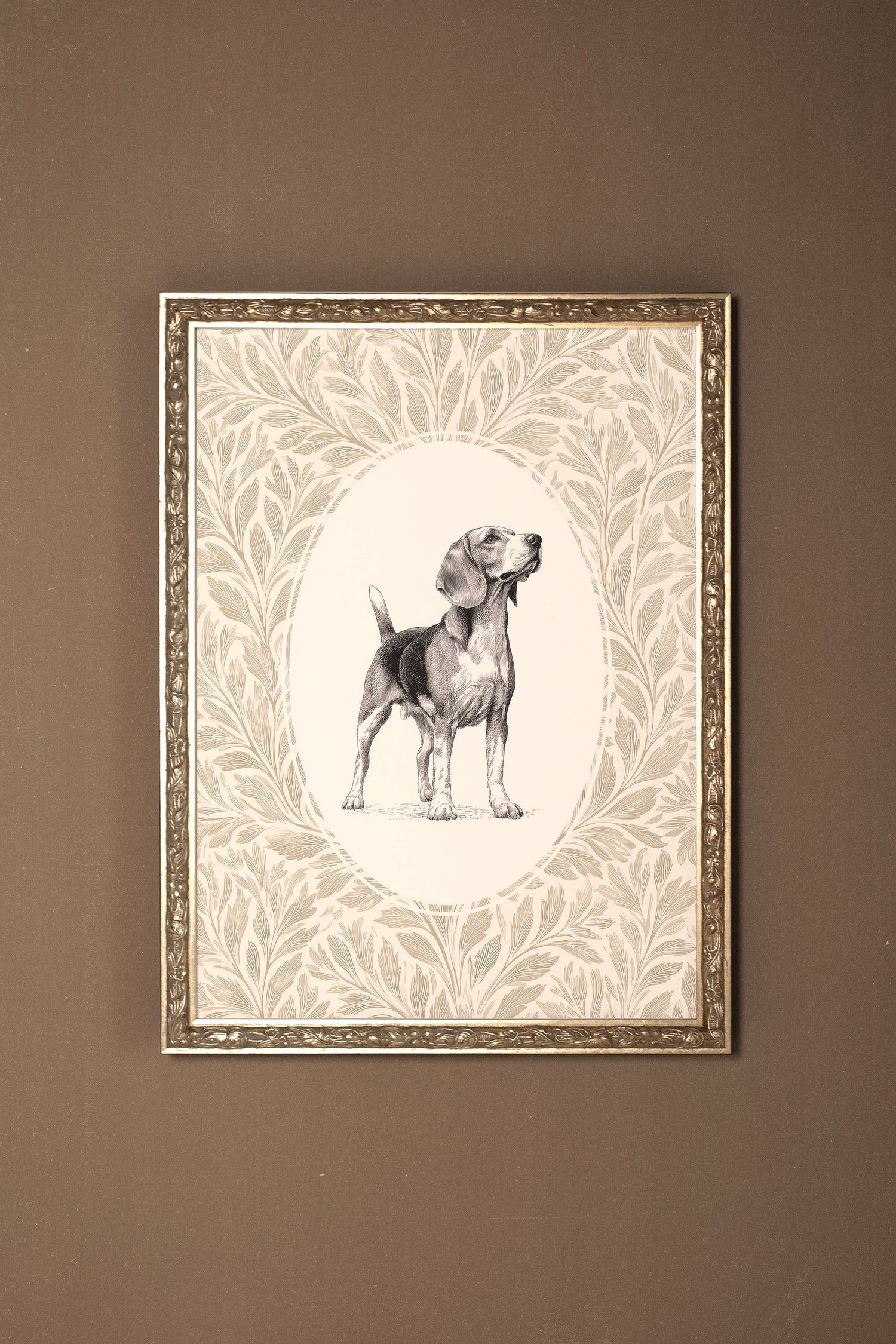 VINTAGE PUP-Artwork on rigid canvas, framed in Vintage Silver