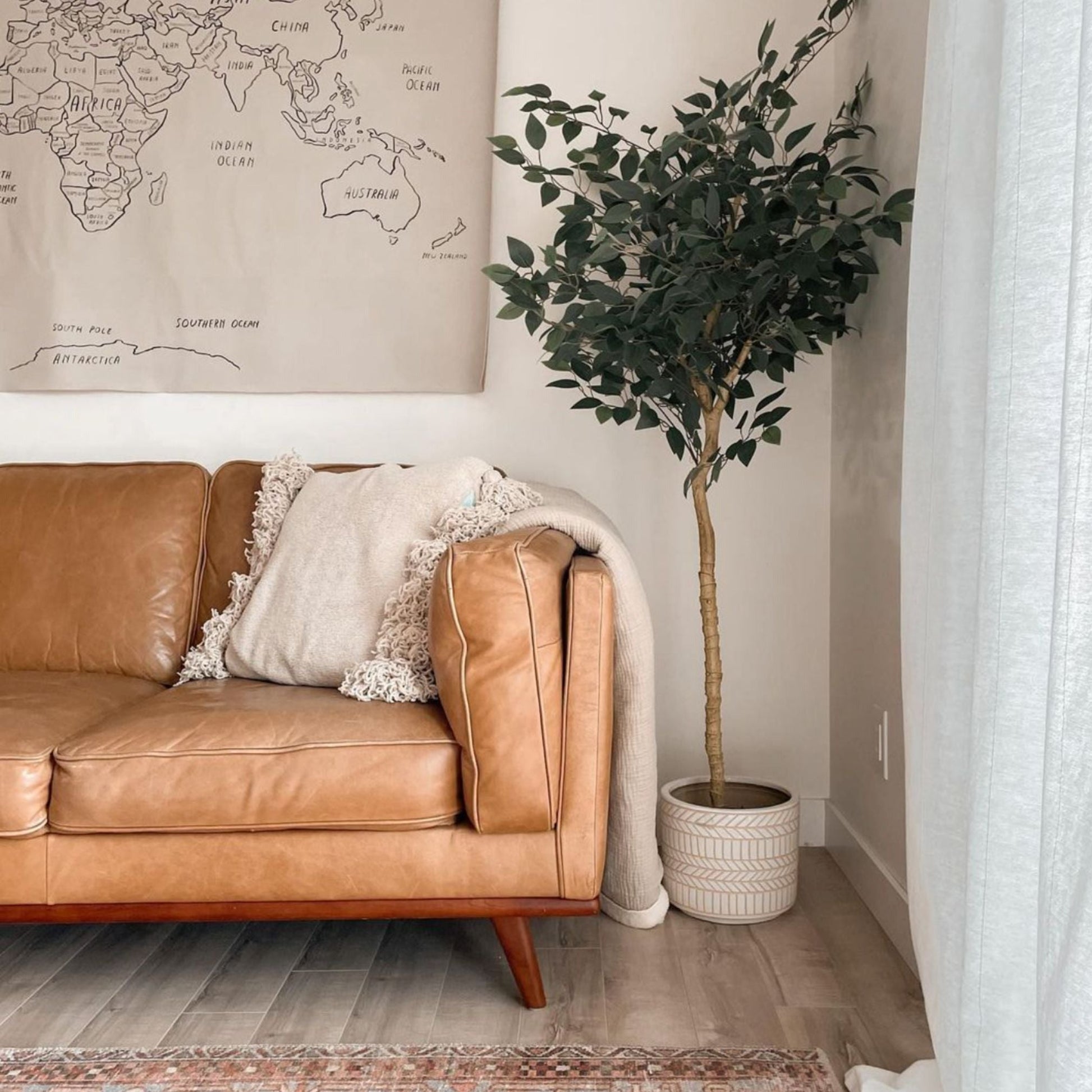 There’s no real maintenance involved in having a faux plant. The only thing we can say is to occasionally inspect the fiddle leaf for dust. If you’re in a dust-prone environment, use a damp cloth and wipe it clean at your leisure when you feel it’s looking a bit faded.