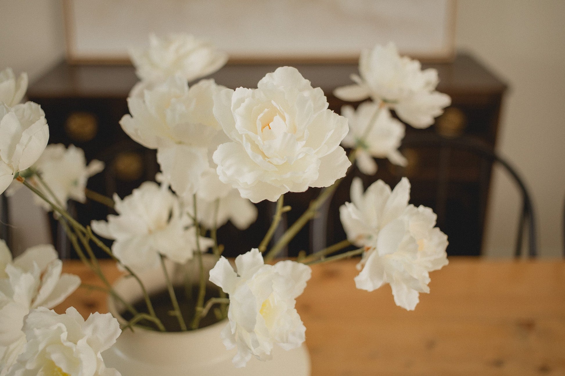 The 3 Stem Peony features lush, full blooms at varying heights, creating a rich texture that enhances any arrangement. Its elegant, fluffy flowers stand beautifully alone or complement other floral designs, adding a refined touch to your space. Perfect for those seeking timeless sophistication in their floral decor.