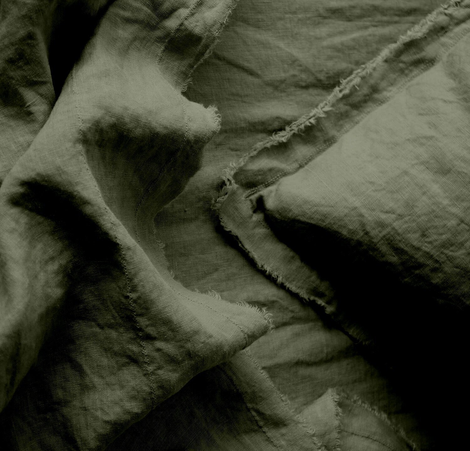 Handmade Raw Edged Moss Green - 100% Pure Linen | Linen Cotton Mix | 3 Piece Duvet Cover Set | 4 Piece Sheet Set